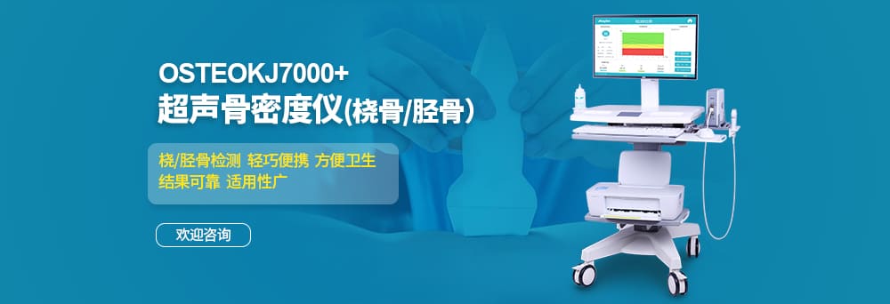 南京科進實業有限公司自主研發生產的超聲骨密度儀OSTEOKJ7000+,采用超聲波原理進行骨密度檢測,安全無輻射;對人體橈骨或脛骨部位檢測骨質狀況,并反映全身骨密度,操作衛生,使用方便;適用于各類醫療與體檢機構,不論對中老年人骨質疏松癥還是青少年兒童骨骼發育狀況,都能提供詳細的臨床參考數據,檢測結果準確可靠。