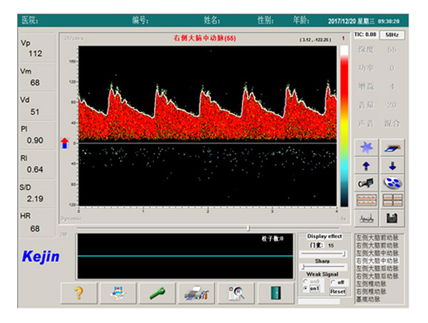 KJ-2V6M+超聲經顱多普勒血流分析儀是南京科進實業有限公司新推出的一款高性價比三探頭TCD產品,產品匯集了多深度M模、趨勢圖、栓子跟蹤、小信號識別和自動搜索血管等多項TCD新技術,可實現單、雙通道模式檢測,多深度模式可現實一條血管的八個深度的血流頻譜信息,有效協助醫生快速做出診斷。